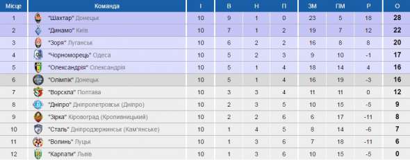 1 и 2 октября состоялись шесть матчей десятого тура украинской Премьер-лиги, по итогам которых в первой тройке произошло одно изменение.