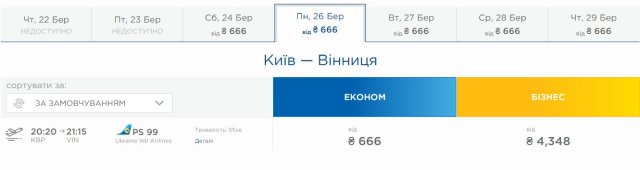 Зараз мінімальна вартість квитків на рейс Київ — Вінниця в системі онлайн-бронювання МАУ складає 666 грн, а у зворотному напрямку — 682 грн. До найдешевшого тарифу входить тільки ручна поклажа.
